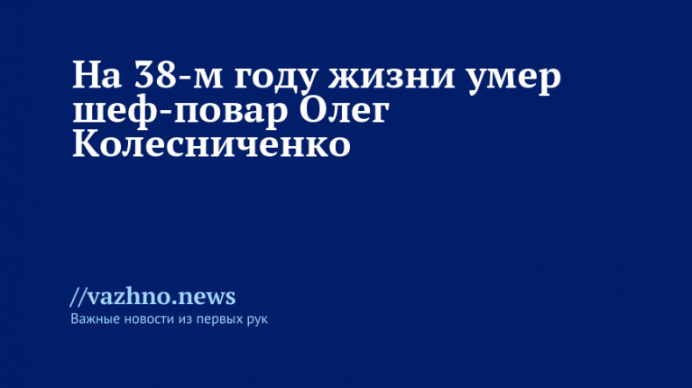 В возрасте 37 лет скончался шеф-повар Олег Колисниченко. Об этом 7 октября сообщила ресторанный критик Екатерина Смирнова.
