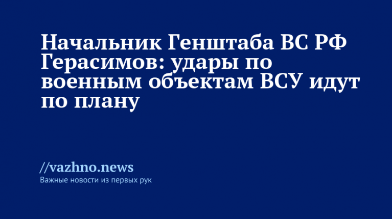 «По плану Генерального штаба продолжается целенаправленное нанесение массированных ударов по военным объектам и объектам военно-промышленного комплекса Украины», — приводит цитату Герасимова ТАСС.