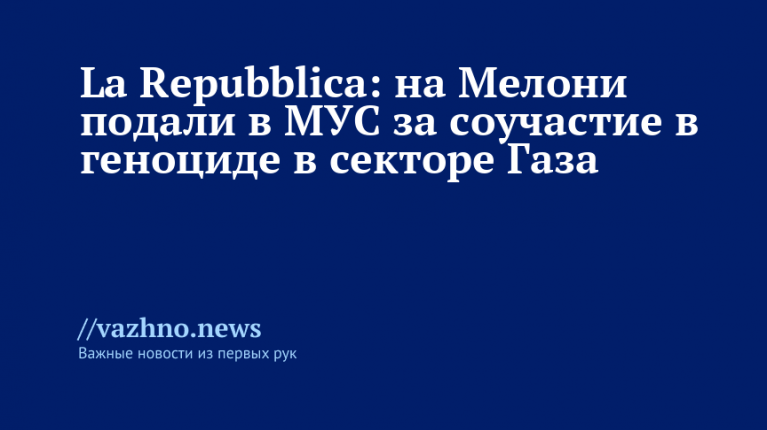 Премьер-министра Италии Джорджо Мелони обвинили в соучастии в геноците на территории Газы и подали на нее иск в Международный уголовный суд (МУС). Об этом 7 октября сообщила газета La Repubblica.