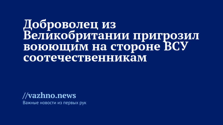 Британский доброволец Эйден Миннис, участвующий на стороне России в спецоперации (СВО), 8 октября выступил с угрозой в адрес британцев, воюющих в рядах Вооруженных сил Украины (ВСУ).