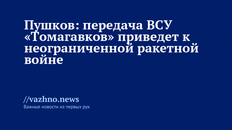 «На данный момент решение о поставках Томагавков Украине выглядит как шаг к неограниченной ракетной войне с Россией и к возрастанию жестокости конфликта, из которого будет еще сложнее выйти», — написал он в своем Telegram-канале.