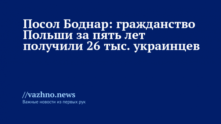 За период с 2019 по 2024 годы гражданство Польши получили 26 тысяч граждан Украины. Об этом 8 октября рассказал посол Украины в Польше Василий Боднар в интервью радиостанции RMF FM.