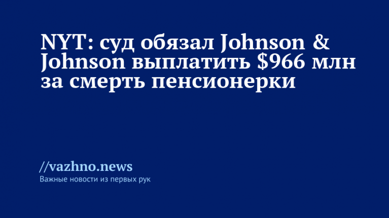 NYT: суд велел Johnson & Johnson выплатить $966 млн за смерть пенсионерки