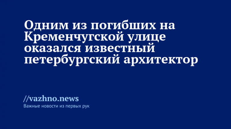 Среди мужчин, погибших при пожаре в жилом доме на Кременчугской улице, оказался знаменитый архитектор из Петербурга Александр Супоницкий. Об этом 8 октября сообщил телеканал «78», ссылаясь на информированные источники.