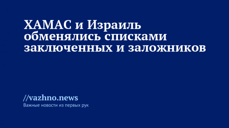 «Сегодня произошел обмен списками заключенных, которые подлежат освобождению в соответствии с согласованными критериями и численностью», — указано в объявлении ХАМАС в Telegram.