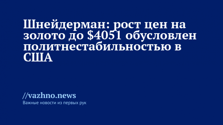 Шнейдерман: рост цен на золото до $4051 вызван политнестабильностью США