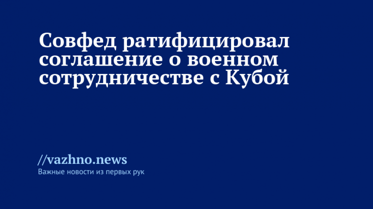 Сенаторы утвердили ратификацию соглашения о военном сотрудничестве между правительствами Российской Федерации и Республики Куба, которое было подписано 13 марта 2025 года в Гаване и 19 марта 2025 года в Москве. Информация об этом появилась 8 октября на официальном сайте Совета Федерации.