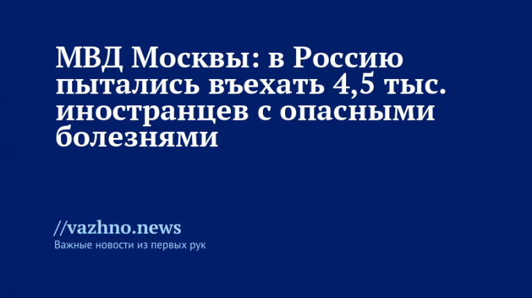 «Было выявлено примерно 4,5 тыс. иностранных граждан, которые пытались оформить разрешительные документы в Российской Федерации и у которых диагностировали инфекционно опасные заболевания, представляющие угрозу для окружающих», — заявил он на пресс-конференции, цитату приводит ТАСС.