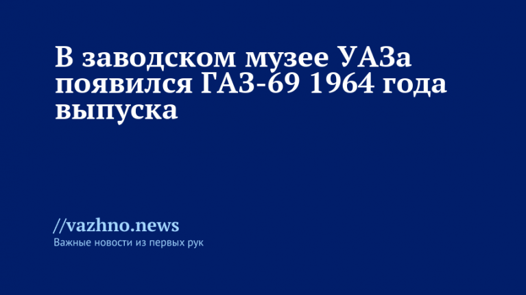 В музее Ульяновского автомобильного завода появился внедорожник ГАЗ (УАЗ)-69, произведенный в 1964 году. Этот автомобиль был передан музею председателем совета директоров компании «Соллерс» Адилем Шириновым, о чем сообщил 8 октября Telegram-канал автозавода.