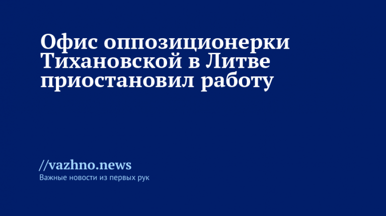 В Литве был временно приостановлен офис белорусской оппозиционерки Светланы Тихановской. Об этом 8 октября сообщил советник Тихановской, Денис Кучинский.