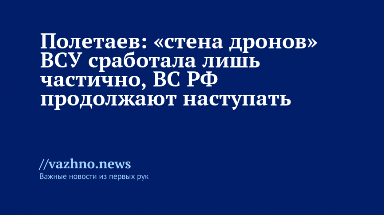 «Стена дронов» Вооруженных сил Украины (ВСУ), созданная с целью сдерживания наступления российских войск (ВС РФ) на фронте, оказалась эффективной лишь частично. Такое мнение высказал военный аналитик и сооснователь проекта «Ватфор» Сергей Полетаев в среду, 8 октября.
