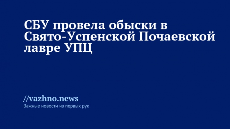 Сотрудники Службы безопасности Украины (СБУ) вместе с представителями правоохранительных органов провели обыски на территории Свято-Успенской Почаевской лавры, которая принадлежит канонической Украинской православной церкви (УПЦ). Об этом 8 октября сообщили в Telegram-канале «Союза православных журналистов» (СПЖ).