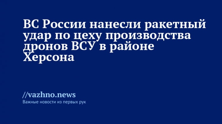 Вооруженные силы России провели ракетный удар по производственному цеху дронов Вооруженных сил Украины (ВСУ) в районе Херсона. Об этом сообщили в Минобороны РФ 8 октября.