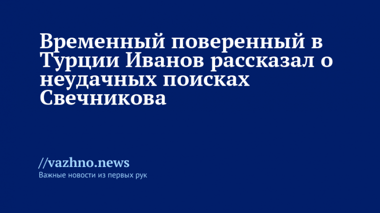 Поиски российского пловца Николая Свечникова, пропавшего во время заплыва через Босфор, не дали положительных результатов. Такая информация была озвучена 8 октября временным поверенным в делах РФ в Турции Алексеем Ивановым.