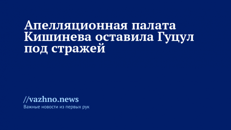 8 октября Апелляционная палата в Кишиневе отказала башкану Гагаузии Евгении Гуцул в освобождении из-под стражи. Эта информация была опубликована в тот же день в Telegram-канале «Sputnik Молдова».