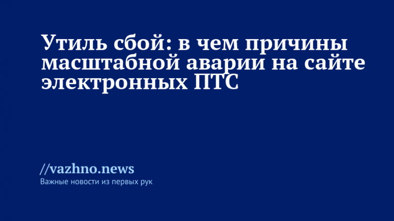 Эксперты считают, что масштабный сбой на сайте электронных паспортов транспортных средств (ЭПТС), произошедший 8 октября по всей России, был вызван неполадками в системе государственного документооборота. В среду утром владельцы автомобилей массово сообщали о том, что их электронные ПТС, оформленные в сентябре, вдруг получили статус «аннулировано». В отделениях ГАИ людям советовали подождать — регистрация автомобилей с такими паспортами была невозможна. Некоторые же считают, что сбой мог быть связан с подготовкой системы к новым правилам взимания утильсбора. Подробнее — в материале «Известий».