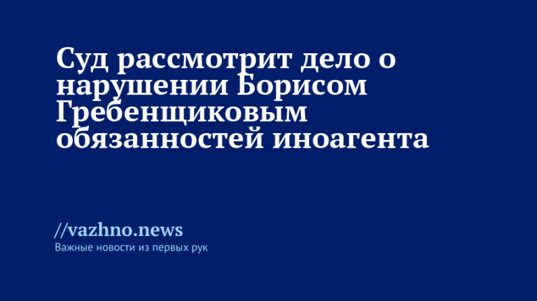 «Куйбышевский районный суд г. Санкт-Петербурга назначил рассмотрение административного дела в отношении иноагента Бориса Борисовича Гребенщикова, которому инкриминируют правонарушение по ч.4 ст.19.34 КоАП РФ», — сказано в заявлении.