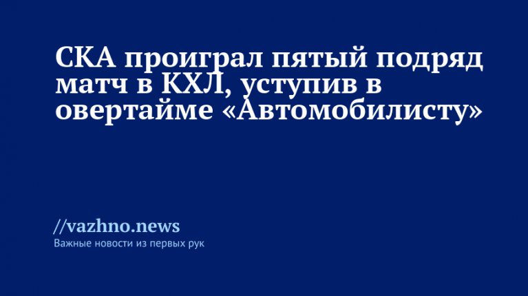 СКА терпит пятое подряд поражение в КХЛ, уступая «Автомобилисту» в овертайме