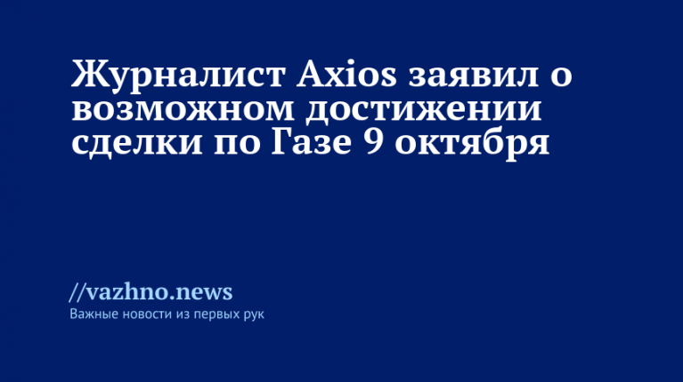 Журналист издания Axios Барак Равид, ссылаясь на заявление израильского представителя, сообщил, что соглашение по Газе может быть заключено уже сегодня, 9 октября.