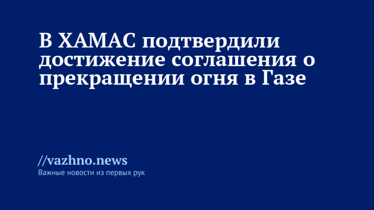 «Движение ХАМАС объявляет о достижении соглашения, предусматривающего прекращение огня в секторе Газа», — говорится в публикации в Telegram-канале.