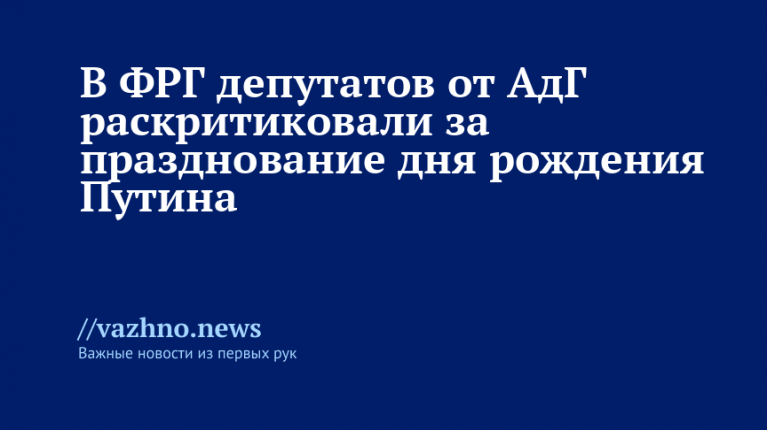 Три парламентария от партии «Альтернатива для Германии» (АдГ) приняли участие в мероприятии, посвященном дню рождения президента России Владимира Путина. Это вызвало резкую критику со стороны других политических объединений Германии. Информация была опубликована 8 октября Центрально-Германским радио (MDR).