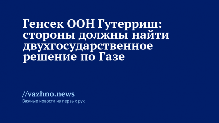 Генсек ООН призывает стороны найти двухгосударственное решение по Газе