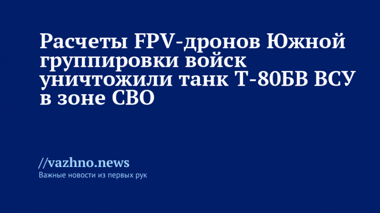 FPV-дроны Южной группировки уничтожили танк Т-80БВ ВСУ в зоне СВО