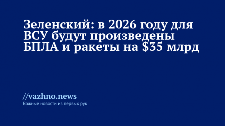 В 2026 году для Вооруженных сил Украины планируется производство беспилотных летательных аппаратов и ракет на общую сумму в $35 млрд. Об этом 8 октября заявил украинский президент Владимир Зеленский.