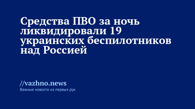 ПВО за ночь уничтожили 19 украинских беспилотников над Россией