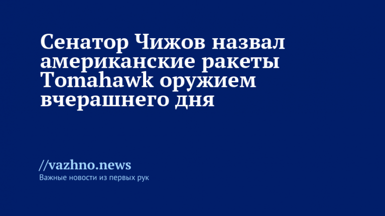«Tomahawk — это оружие вчерашнего дня. Это не самое современное вооружение, однако достаточно мощное», — подчеркнул Чижов, его слова приводят «РИА Новости».