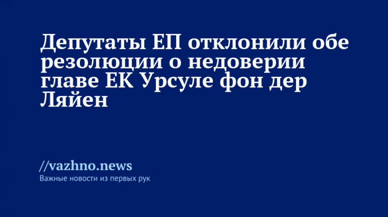 Депутаты Европейского парламента отклонили обе резолюции с вотумом недоверия председателю Европейской комиссии Урсуле фон дер Ляйен. Это следует из результатов голосования, которое транслировалось в прямом эфире на официальном сайте ЕП.