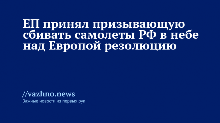 Европейский парламент (ЕП) одобрил резолюцию, в которой призывает государства Евросоюза (ЕС) к сбиванию российских самолетов, нарушающих их воздушное пространство. Об этом стало известно 9 октября на официальном сайте Европарламента.
