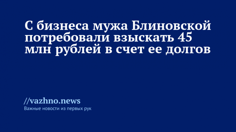 С компании «Аквакультура», которая ранее находилась в собственности супруга блогера Елены Блиновской — Алексея, предъявили требование о взыскании 45 млн рублей. Предполагается, что эти средства пойдут на частичное погашение долгов блогера. Об этом налоговый юрист Иван Морозов сообщил изданию «Известия» 9 октября.