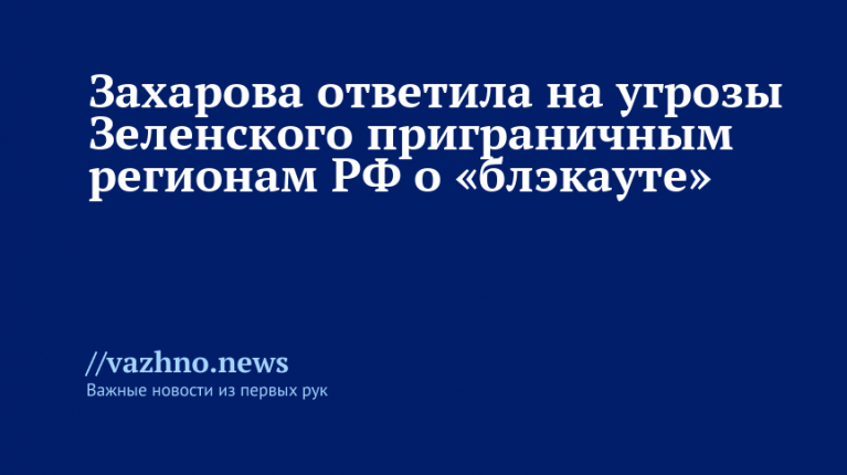 У президента Украины Владимира Зеленского, который ранее пригрозил «блэкаутом» в Белгородской и Курской областях, возможно наблюдается «передоз». Об этом 9 октября сообщила официальный представитель МИД России Мария Захарова.
