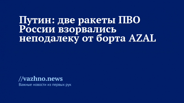 Президент Российской Федерации Владимир Путин во время встречи с азербайджанским президентом Ильхамом Алиевым пояснил, что две ракеты, запущенные средствами противовоздушной обороны (ПВО), не попали прямо в пассажирский самолет AZAL, а взорвались в нескольких метрах от него.