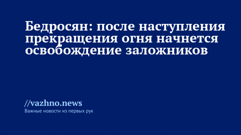 Она также отметила, что Израиль готов принять заложников «в любом состоянии, в котором они могут оказаться». Кроме того, Бедросян сообщила, что сегодня утром в Египте все участники подписали финальный проект первого этапа, предусматривающего освобождение всех заложников.