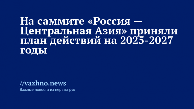 Участники саммита «Россия — Центральная Азия», прошедшего в Душанбе, утвердили план совместных мероприятий на период с 2025 по 2027 годы. Об этом 9 октября сообщили на официальном сайте президента Таджикистана.