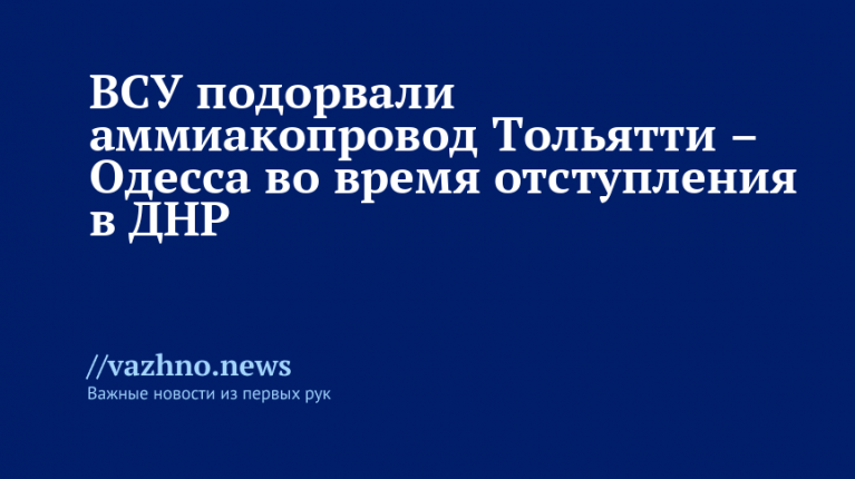 «Для снижения скорости наступления подразделений Вооруженных Сил Российской Федерации в районе, расположенном примерно в 2,5 км к востоку от населенного пункта РУСИН ЯР Донецкой Народной Республики, вооруженные силы Украины произвели минирование ответвления аммиакопровода «Тольятти-Одесса»», — говорится в заявлении ведомства.