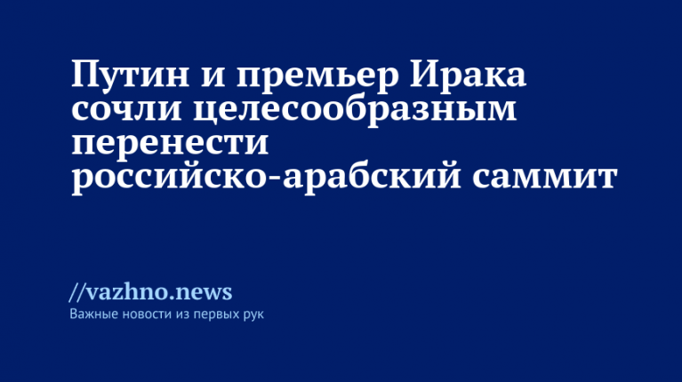 В ходе телефонного разговора между президентом России Владимиром Путиным и премьер-министром Ирака Мухаммедом Судани было принято решение отложить российско-арабский саммит на более поздний срок. Об этом 9 октября проинформировали в пресс-службе Кремля.