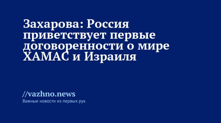 Россия выразила поддержку предварительным соглашениям о перемирии в секторе Газа, достигнутым между палестинской организацией ХАМАС и Израилем. Об этом 9 октября сообщила официальный представитель МИД РФ Мария Захарова в своем заявлении.