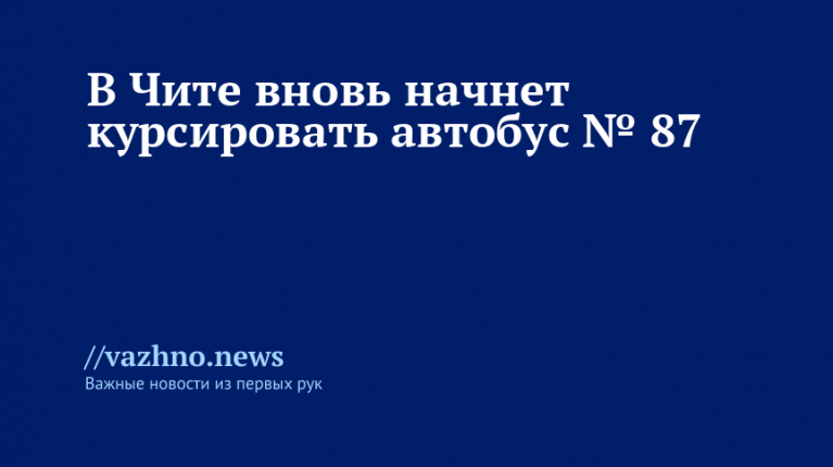 В Чите с 13 октября вновь будет запущен автобусный маршрут № 87, который связывает «ТСЖ «Энергия» с дорожной больницей. Об этом сообщила пресс-служба администрации города.