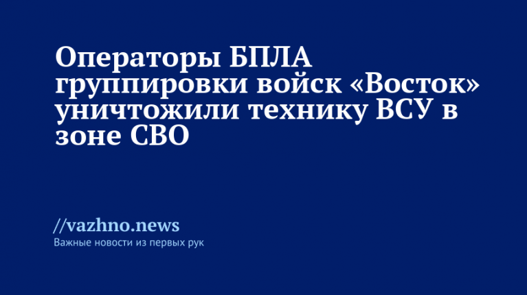 Операторы БПЛА «Восток» уничтожили технику ВСУ в зоне СВО