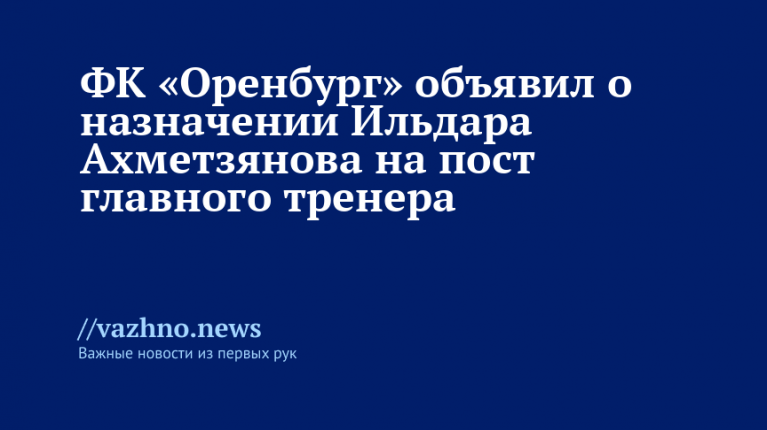 Футбольный клуб (ФК) «Оренбург» сообщил о назначении Ильдара Ахметзянова на должность главного тренера команды. Данная информация была опубликована 10 октября на официальном сайте клуба.
