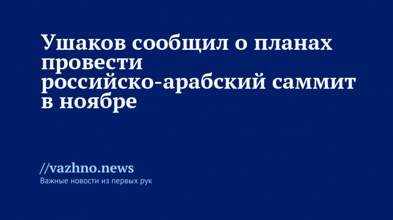 Москва намерена организовать перенесенный с октября российско-арабский саммит в ноябре. Об этом 10 октября сообщил помощник президента РФ Юрий Ушаков.