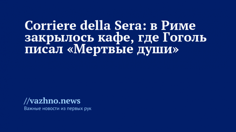 Corriere della Sera: В Риме закрылось кафе Гоголя из «Мертвых душ»