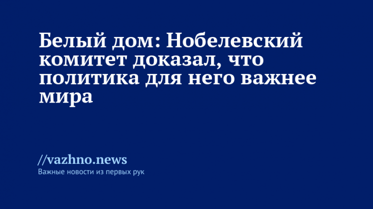 Белый дом: Нобелевский комитет подтвердил важность политики над миром