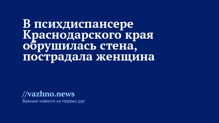 В Краснодарском крае при обрушении стены психоневрологического интерната пострадала женщина. Об этом 10 октября проинформировала прокуратура региона.