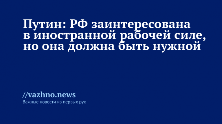 «Россия заинтересована, конечно, в рабочей силе, но в то же время мы заинтересованы в том, чтобы это была нужная нам рабочая сила», — подчеркнул Путин.