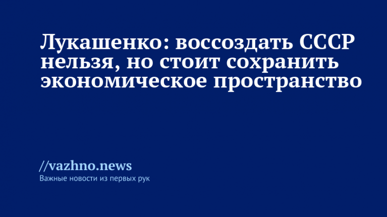 Лукашенко: СССР воссоздать нельзя, но экономическое пространство сохранить стоит
