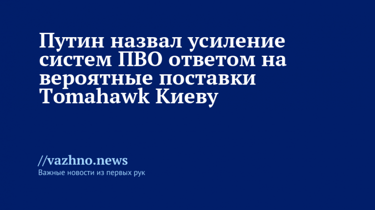 Укрепление российских систем противовоздушной обороны (ПВО) станет мерой в ответ на возможные поставки ракет Tomahawk Украине. Об этом 10 октября заявил журналистам президент Российской Федерации Владимир Путин.